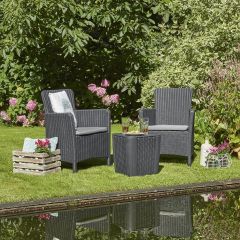 Комплект мебели под искусственный ротанг Корфу Балкон - лидер продаж группы KETER! Компактный, стильный и легкий садовый комплект мебели Corfu Balcony Set станет не только функциональным, но и эстетическим элементом садового участка. Небольшие размеры и приятная цена - все это садовая мебель Corfu Balcony Set