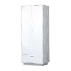 Эго Шк-1 Шкаф с 2дв, 1ящ (бетон светлый/белый глянец) цоколь