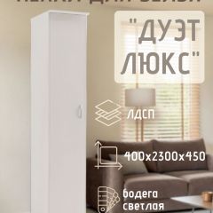 Пенал для белья Дуэт Люкс вы можете купить в интернет-магазине Larana.market по цене 5 100 руб. Только качественная мебель от Российских брендов. Если у вас возникли вопросы или вам нужна консультация по наличию, срокам доставки, ценам, обращайтесь любым удобным способом.